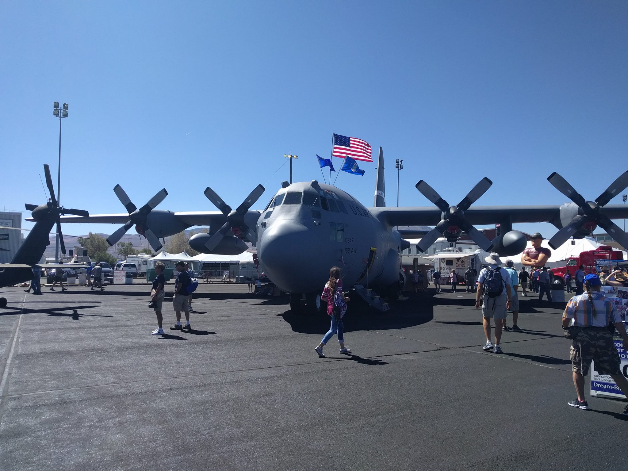 2016年の目玉は米海軍のブルー・エンジェルスの演目、2017年はテキサス・フライング・レジェンズ・ミュージアムのB-25ミッチェル爆撃機とその他戦闘機の編隊飛行の演目と海兵隊のAV-8B ハリアーの演目があり、日本人としてここリノでみる日本機のホンダ・ジェットのデモフライトに深い感銘を覚えました!